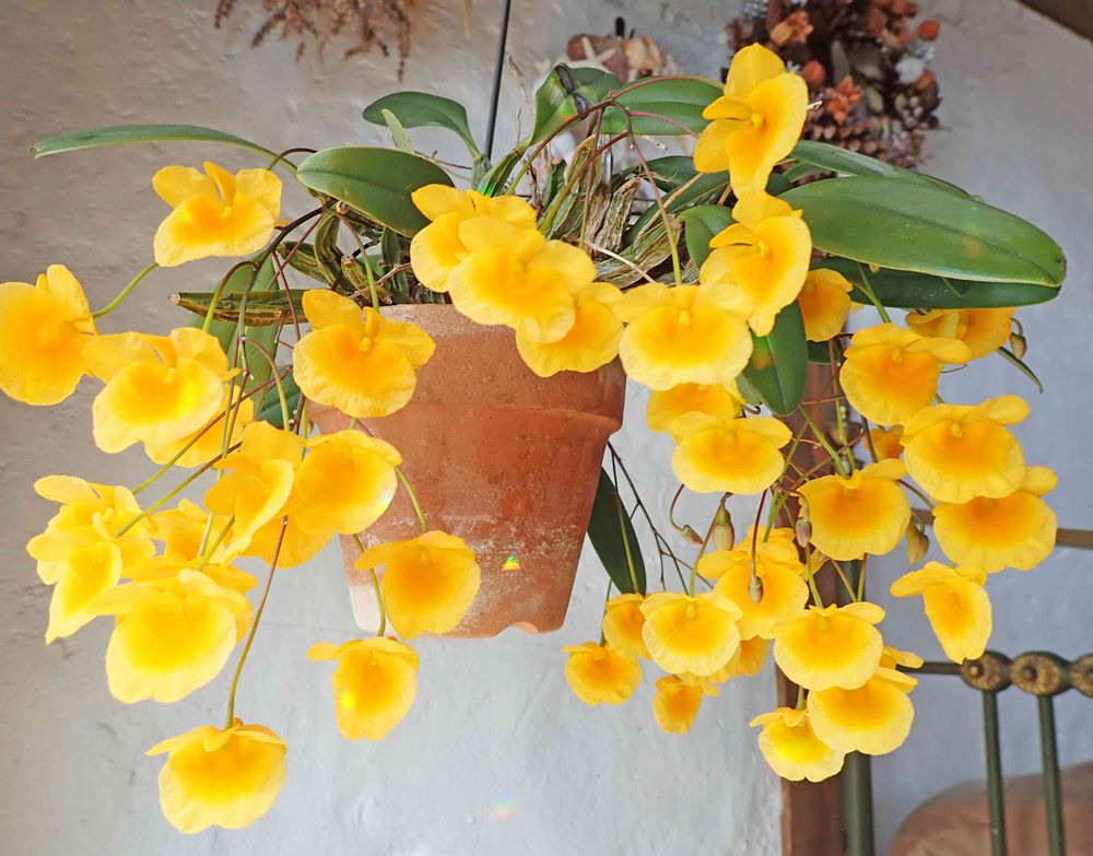 同じ蘭の黄色でも、オンシジウムとはまたちょっと違った色あいで、山吹色でまるっとした形が可愛らしい印象ですね😄