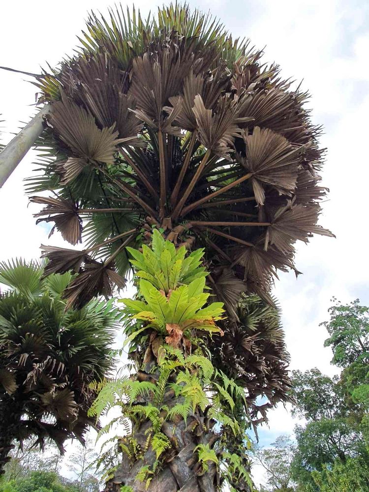 葉柄に棘が無さそうですから巨木という事ですし、パルミラヤシとかの仲間でしょうか…