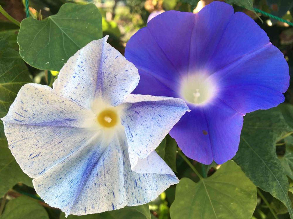 これは昨日の朝撮ったのですが、ちょうど普通の朝顔と西洋朝顔がコラボしていて、朝から見ていて爽やかな気持ちになりました❣️