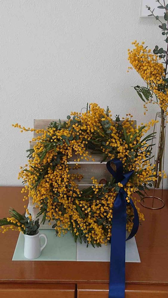 はなごんやアソシエさんから取り寄せた『ミモザのリース』