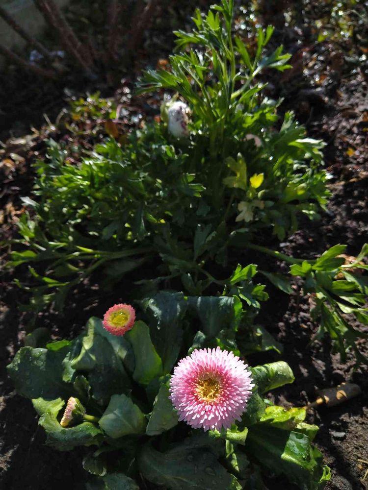 小さな庭,デージー タッソー ストロベリー&クリーム,ラナンキュラス バイカラーmixの投稿画像