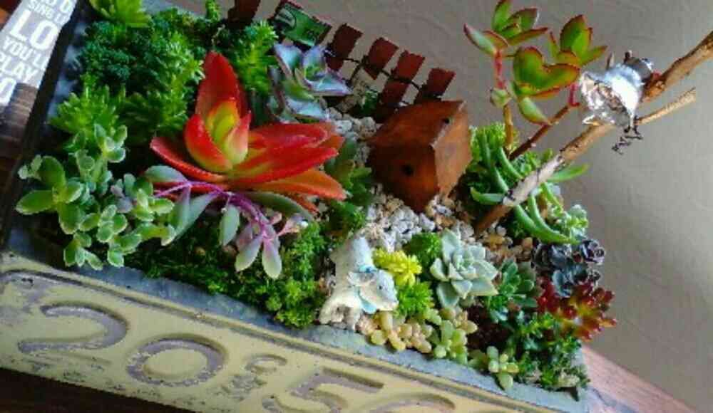 わんこが出迎えてくれるオウチをイメージした箱庭仕立て。(*^^*)