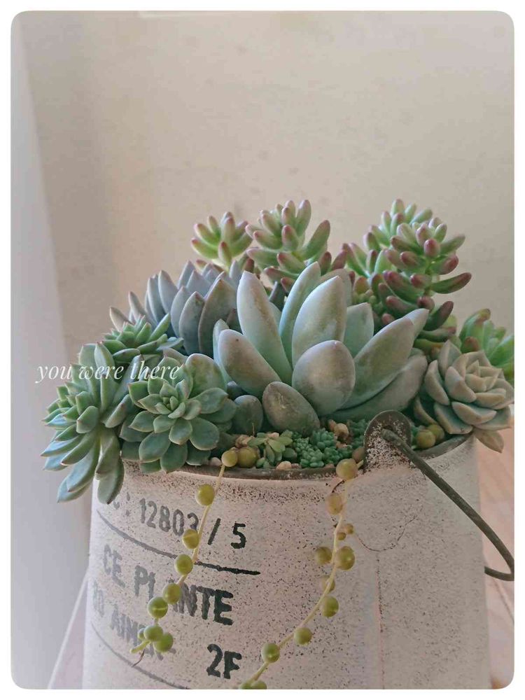 前に作った邪悪丼と同じ鉢の色違い。全体的に白っぽい子達でまとめて、邪悪丼と対をなすイメージで作りました。スカーレットの葉っぱがポロポロ取れちゃって大変だったけど、なんとか綺麗にまとまったかな。