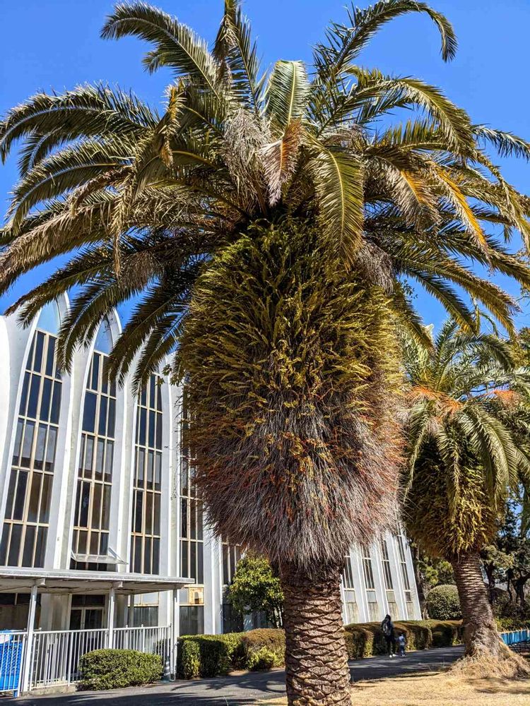 背の高いワシントンヤシモドキの方にばかり目が行って……よく、フェニックスのシルエットとかも宮崎では使ってるものの……そこまで意識が及びませんでした。