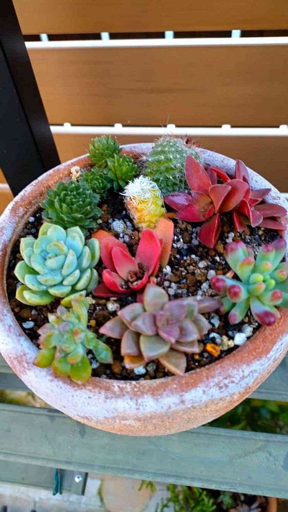 今朝も気持ち良いお天気ですね〜🌷早春の足音が聞こえてくるようです。今朝のpicは多肉植物の寄せ植えです。2年近く前に多肉植物をブリキの器に入れてこの棚などに置いていたものが…かなり錆びてきてしまったので多肉大移動とダメなものは断捨離しました😅💦💦