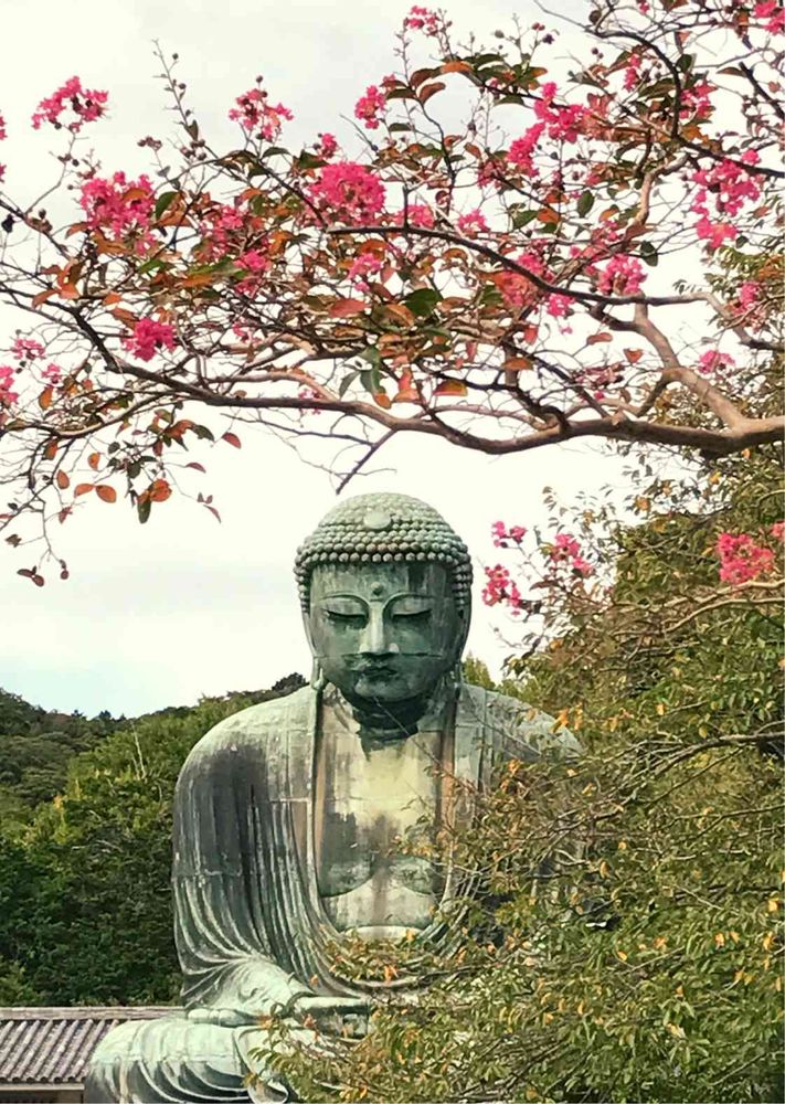大仏様とサルスベリとっても素敵です❣️🌸衣裳替えの桜の紅葉🍁みたいですね。