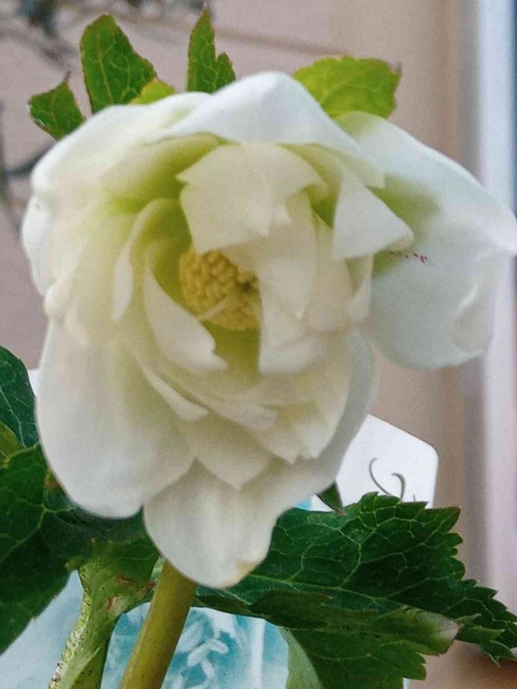 一輪だけ咲いた白ダブルのクリスマスローズ🌼