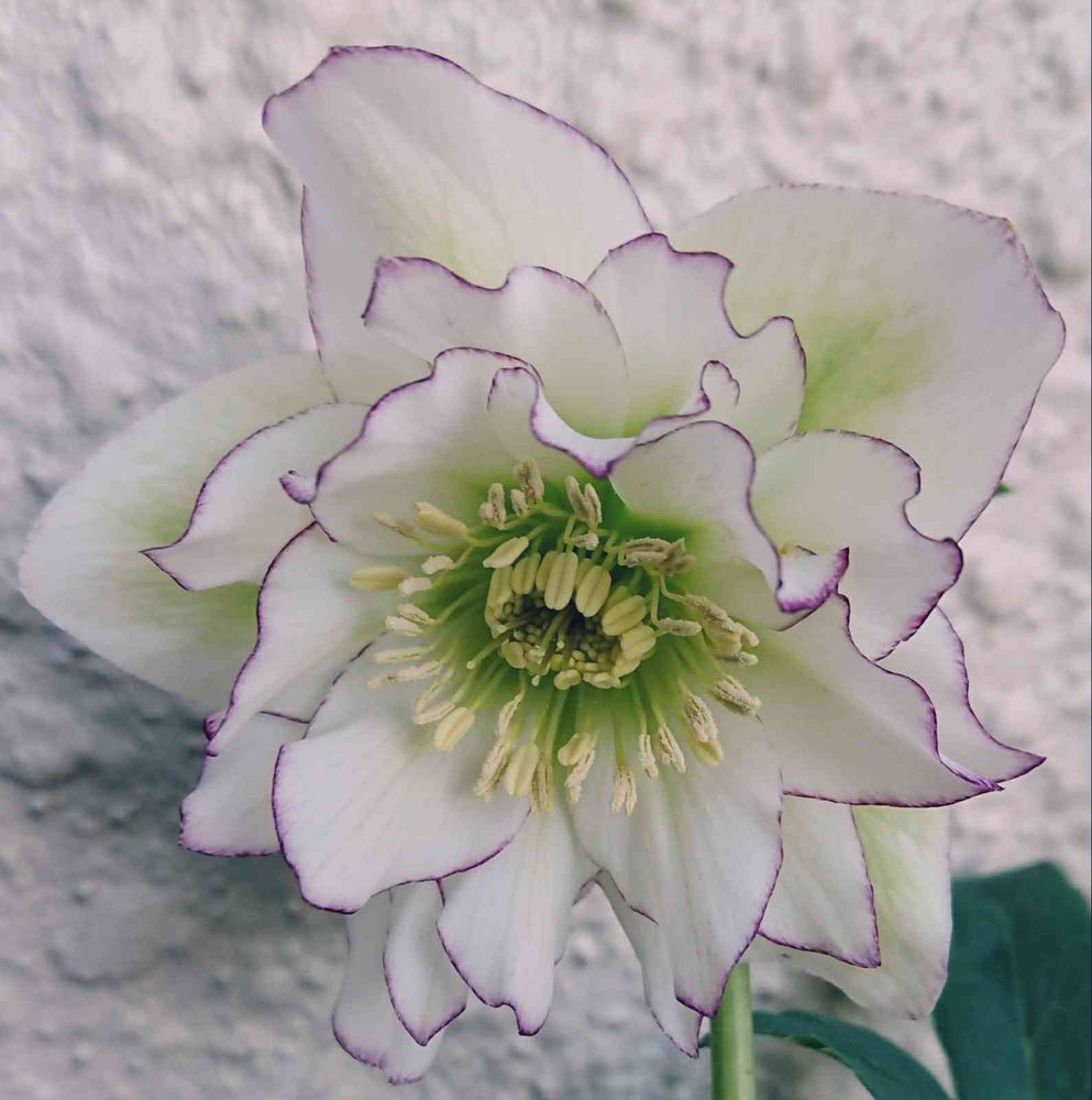 後ろの白壁に負けないような白さのピコティ系の花❣️