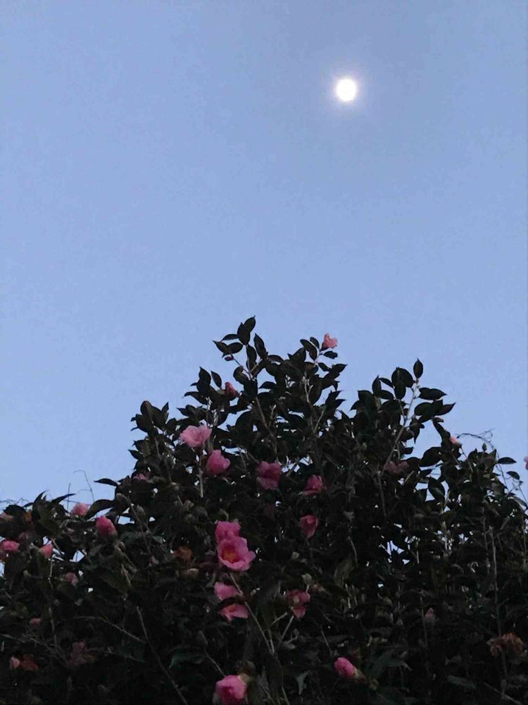 空が澄んでいてお月様が綺麗な夕暮れですね。