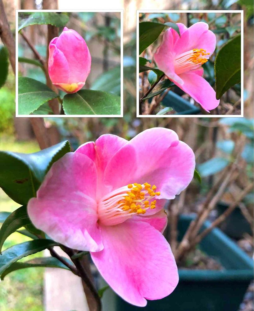 ツボミからピンクで、古典椿とは雰囲気が違うので、洋種のツバキかと思いました。