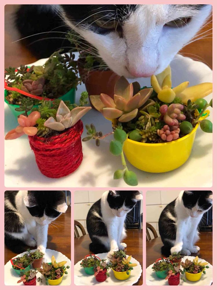 ひろみみにゃさんが多肉いじってるの…見て真似してる~😆可愛い(*≧з≦)❤️