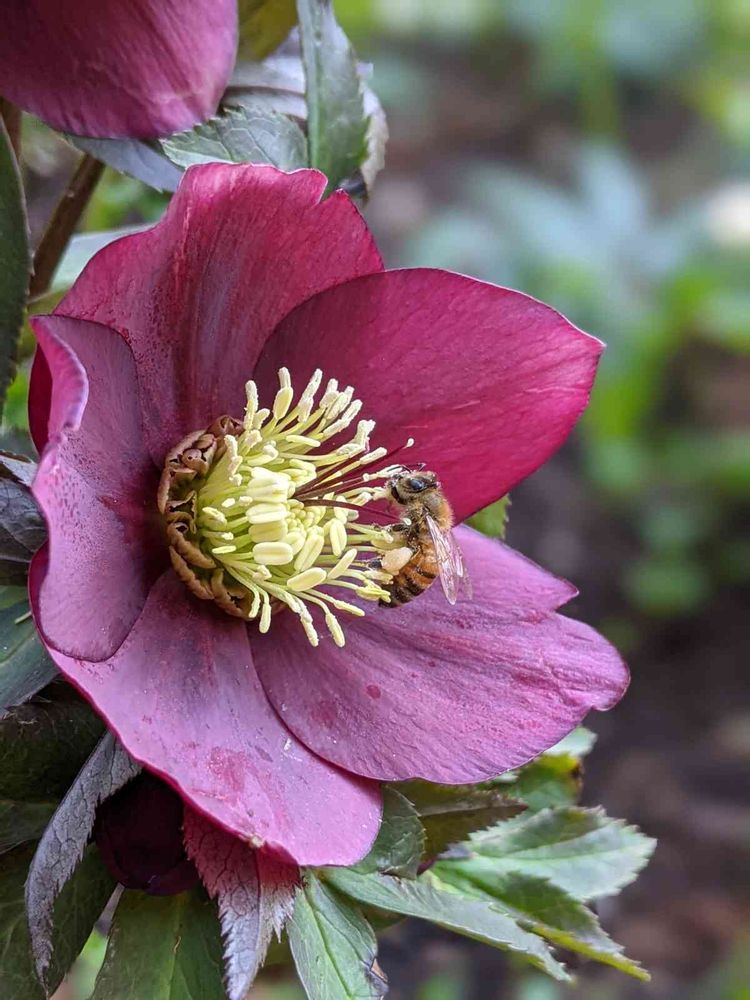 クリスマスローズと蜂