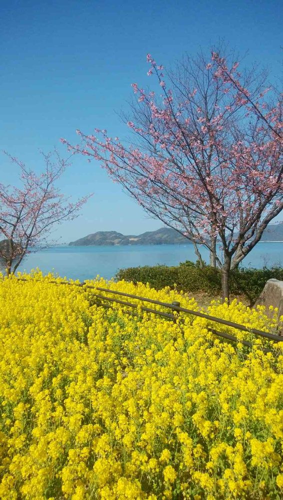 菜の花と🌸のコラボ、最強ですね😉