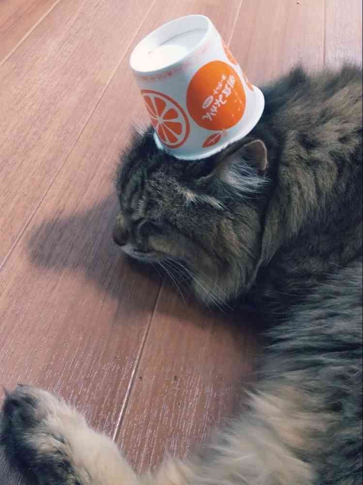 ややこさまヨーグルトカップを乗せられても動じないところがニャンとも可愛い😻🐾💗