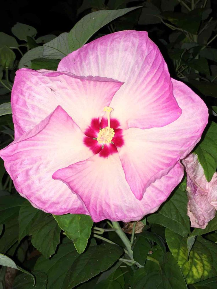 見るたびに 大っきいムクゲだなぁと思ってました😅 お花が大きいからピンク色が映えて綺麗ですよ💓