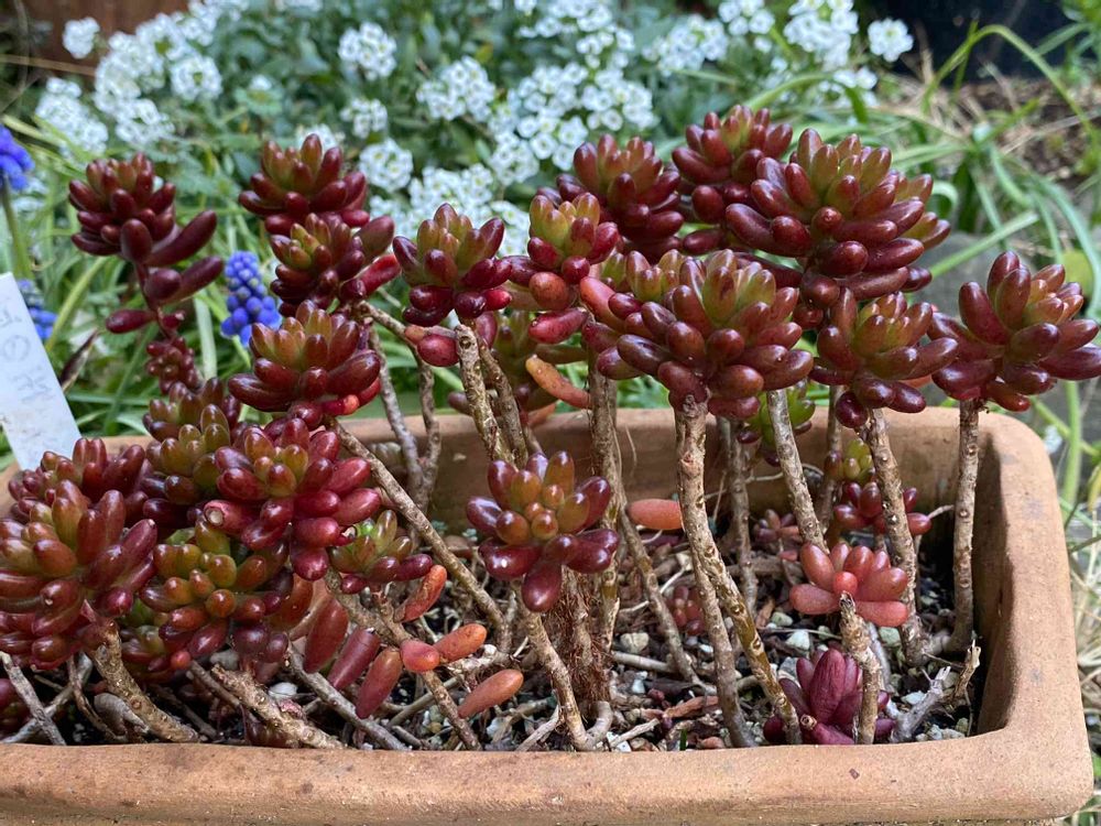 地植えのムスカリとスィートアリッサムの前に置いてみました💞