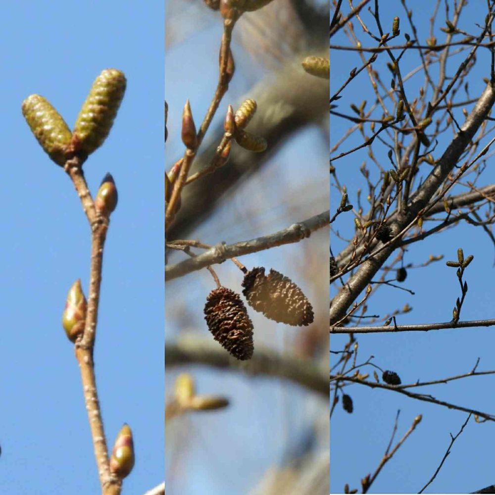 オオバヤシャブシは葉芽、雌花序、雄花序の順と習いました。