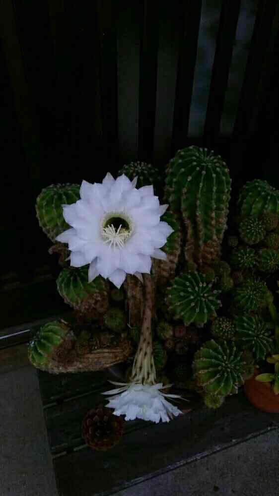 隣の花友婆ちゃんとこのサボテンに真っ白で大きな花が咲きました~🙌🙌🙌