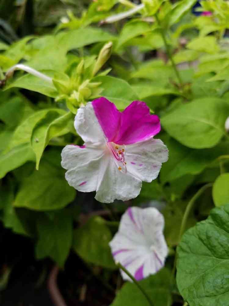 朝顔のピンクのシマシマのつるがのびてオシロイバナのとこで咲いてるのでまぎらわしいですけどね。