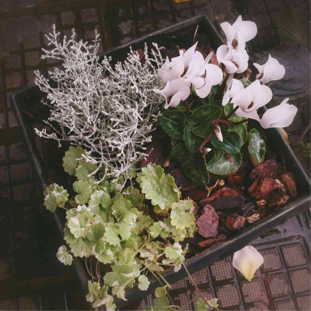 気が早いかな、ガーデンシクラメンで寄せ植えしてみました。