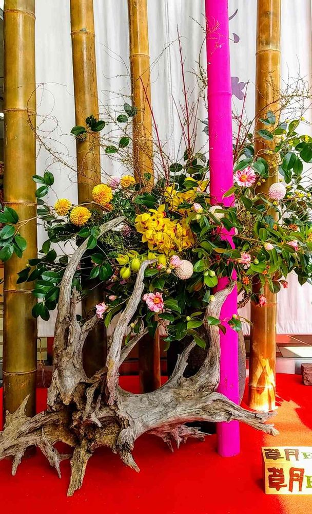 買い出しの途中 きもの屋さんの店先にあまりに迫力のある生け花が▫▫▫