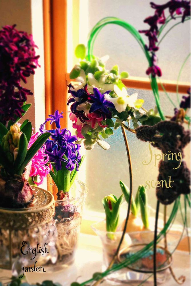 今日の✨一日一明一笑✨窓辺のヒヤシンスたち✨💐 我が家なんです~