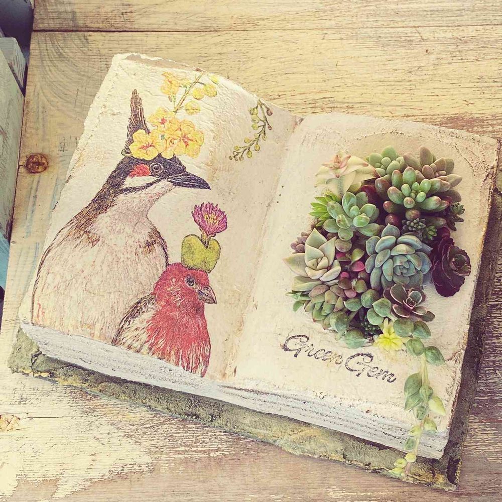 モルタルブックに寄せ植えしました。