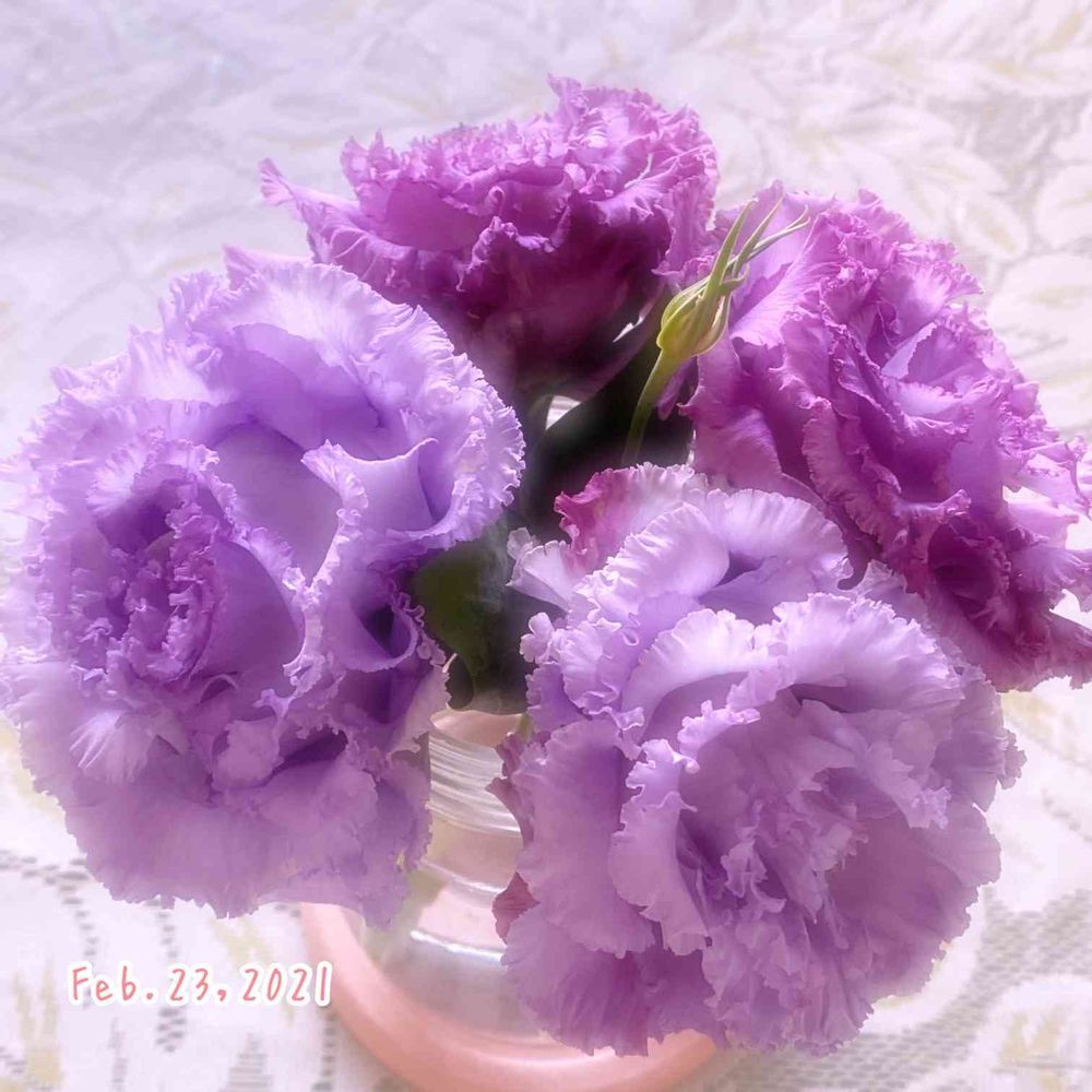 ギザギザ〜フリフリのトルコ桔梗の花びら💜淡い色合いも素敵✨ですね💕