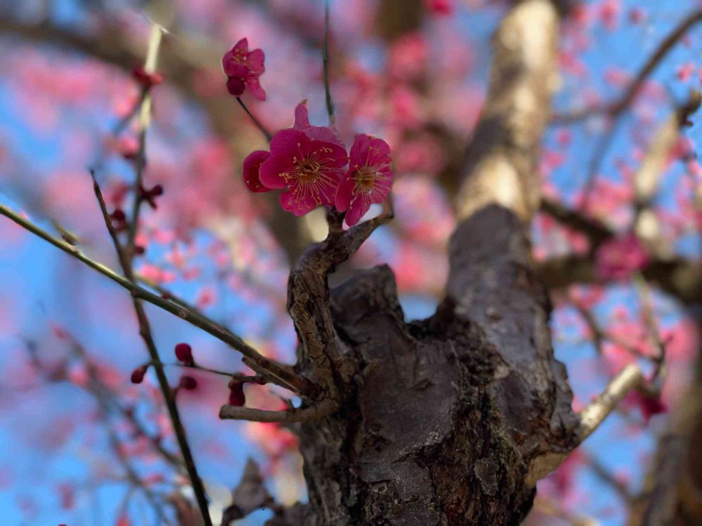 川沿いに梅の木々がありますが、こちらはまだもう少しみたいです。