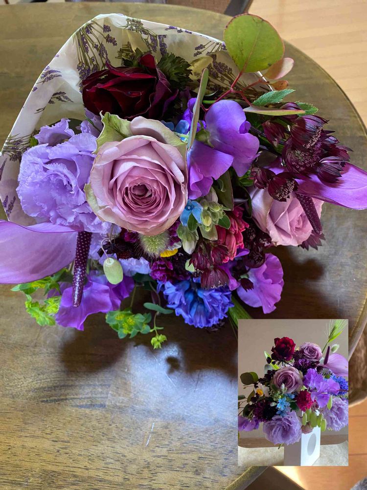 素敵な花束、紫が目をひくシックな色合いです❗♡o。+..:*♡o。+..:*♡o。+..:*♡o。+..:*♡o。+..:*(*ฅ́˘ฅ̀*)♡