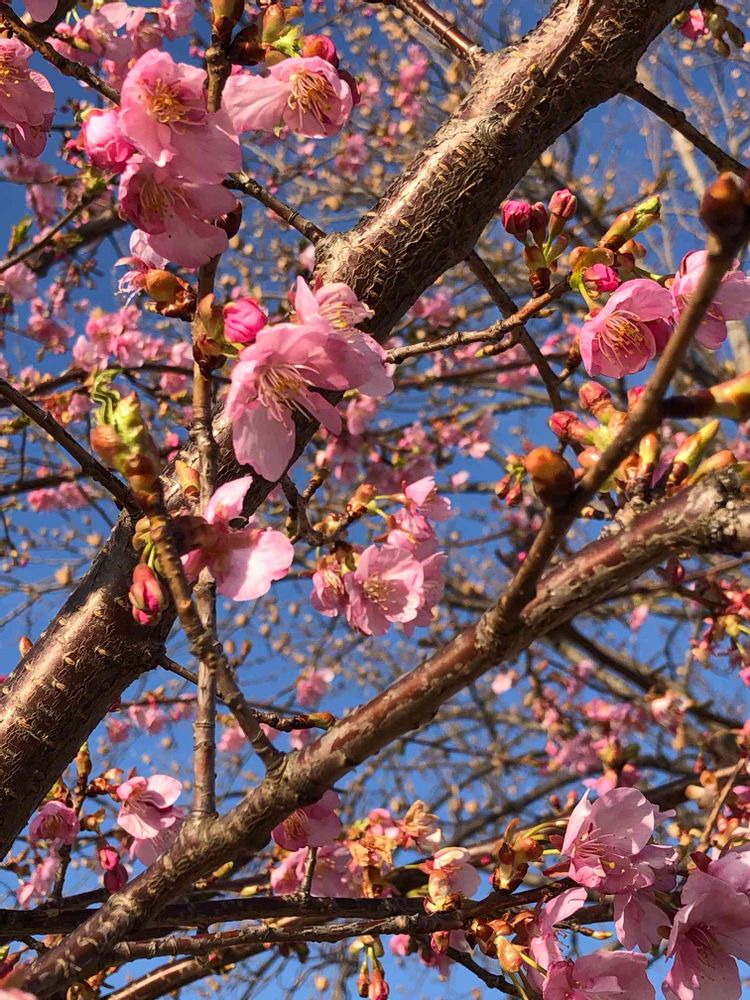 防災公園で1番早く咲く河津桜です🌸