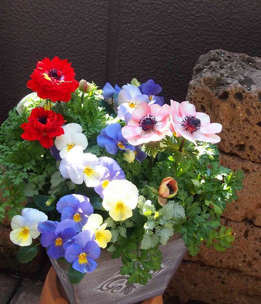 #garden#gardening#flower#ガーデン#ガーデニング#花の寄せ植え#球根鉢#ナチュラル#ボタニカル#園芸#鉢植え#チューリップ#花色変化するビオラ#アネモネ#ヤフオク 只今、出品中👆#花と緑のある暮らし#植物のある暮らし#humminggarden