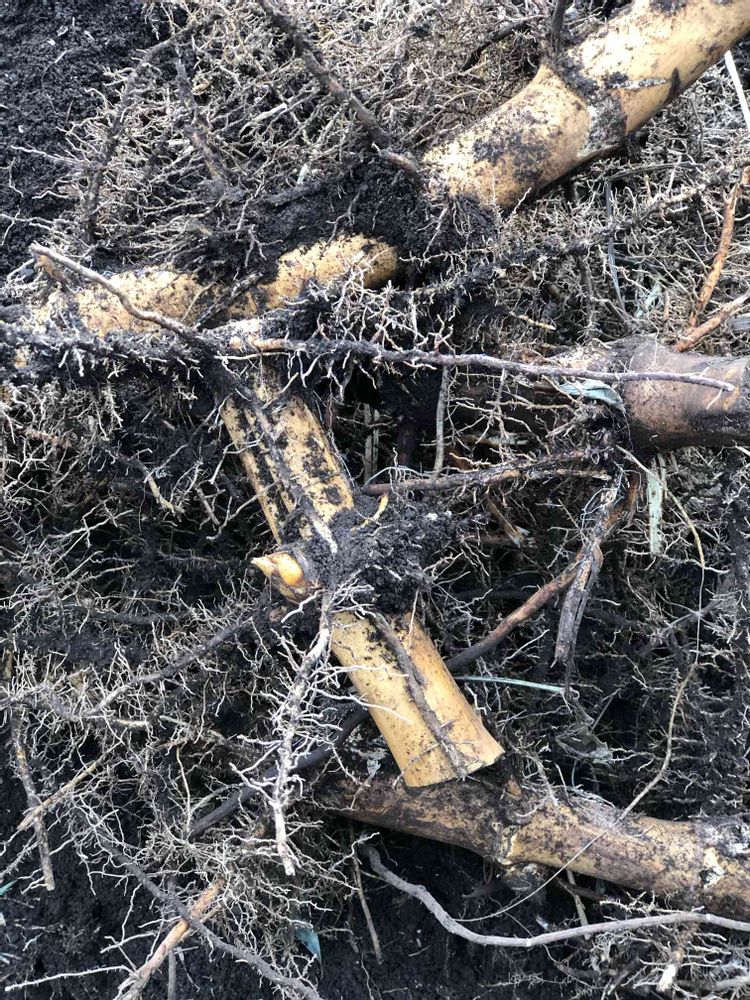竹林脇の畑を耕し中⛏竹の根を掘り上げたらタケノコの赤ちゃん発見しました😆小さくて分かるかな😄春は近いです😊