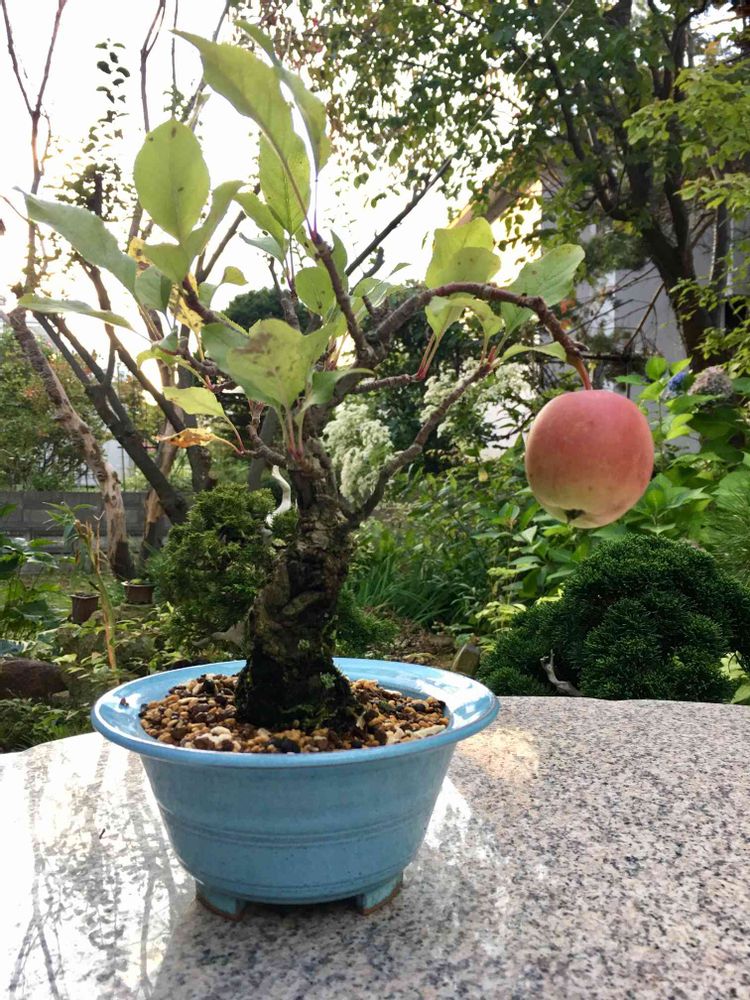 前に見た事のあるリンゴの盆栽より🍎大きく
