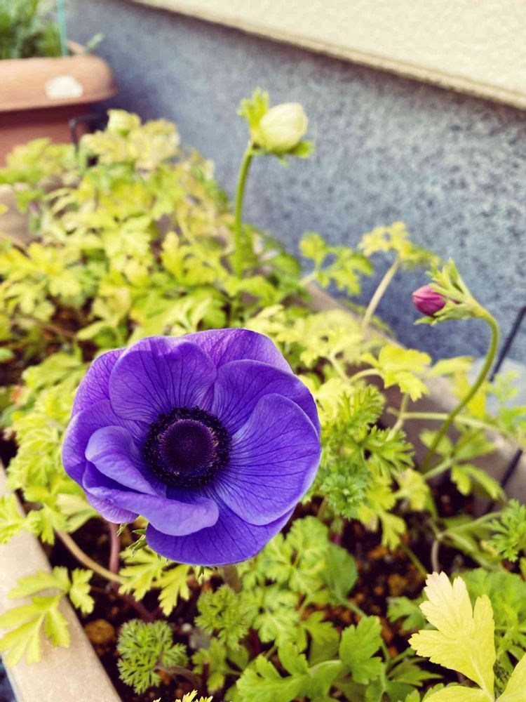 結婚記念日に、アネモネが綺麗に咲いてくれて、お祝いしてくれてるような気持ちになりました。