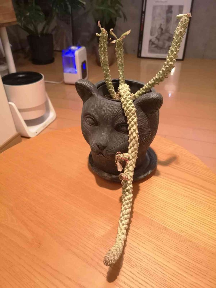 黒猫用の植物を捜索してて、モナデニウム ルガルディアエ錦を連れて帰りました。はじめてみたけどエモい!!
