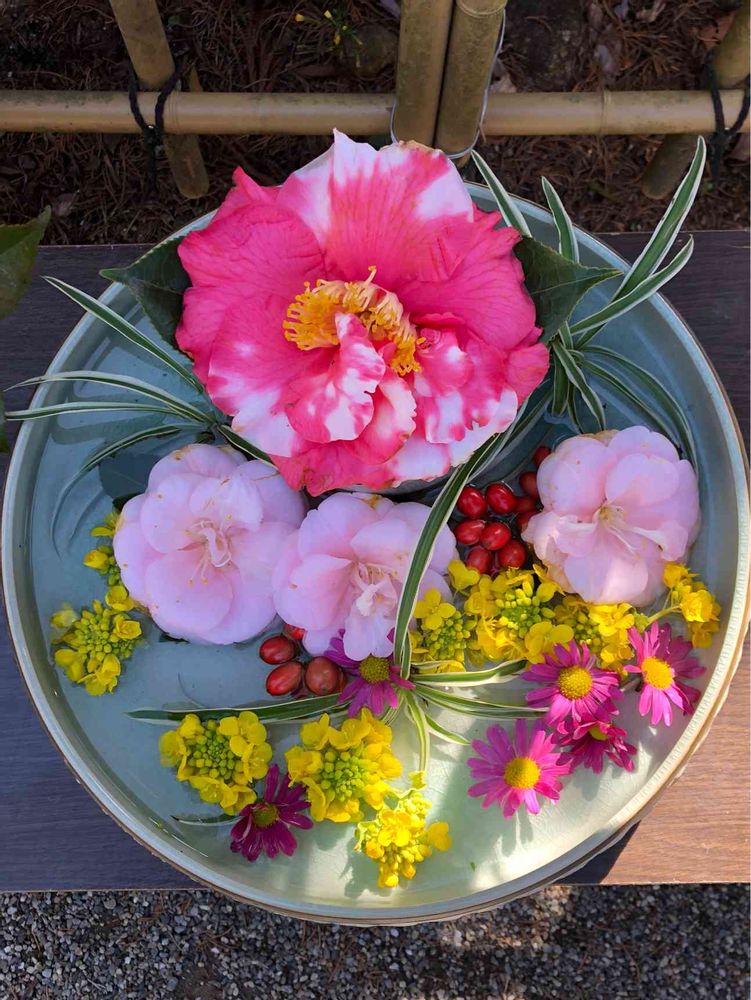 さん、花手水観させて頂きました。2つ質問があります。この花びらは最初から茎を切って作るのですが?