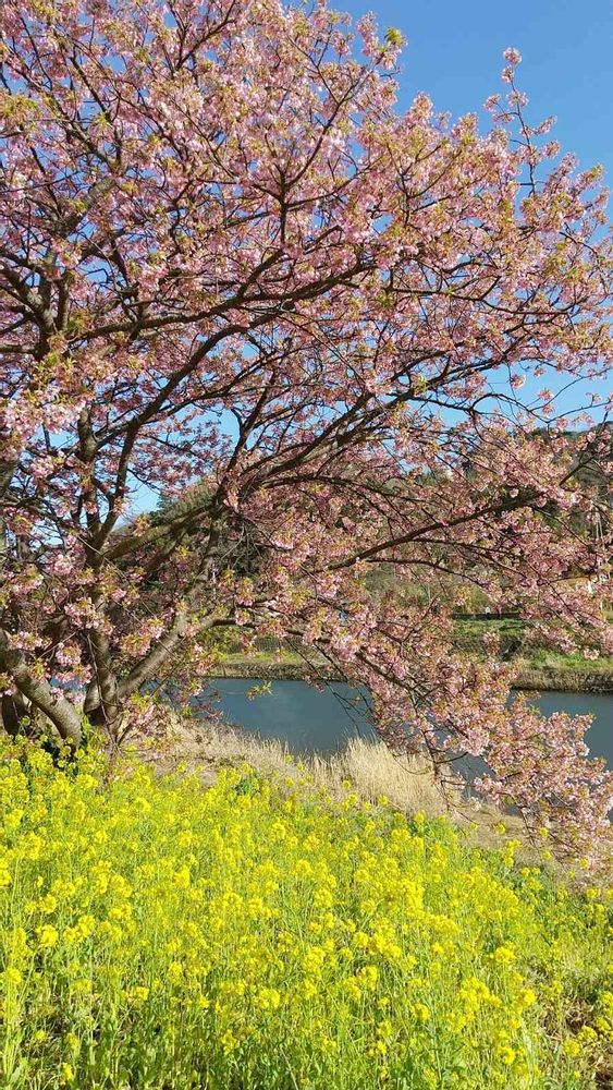 見事な河津桜と菜の花のコラボですね〜🌸😍✨
