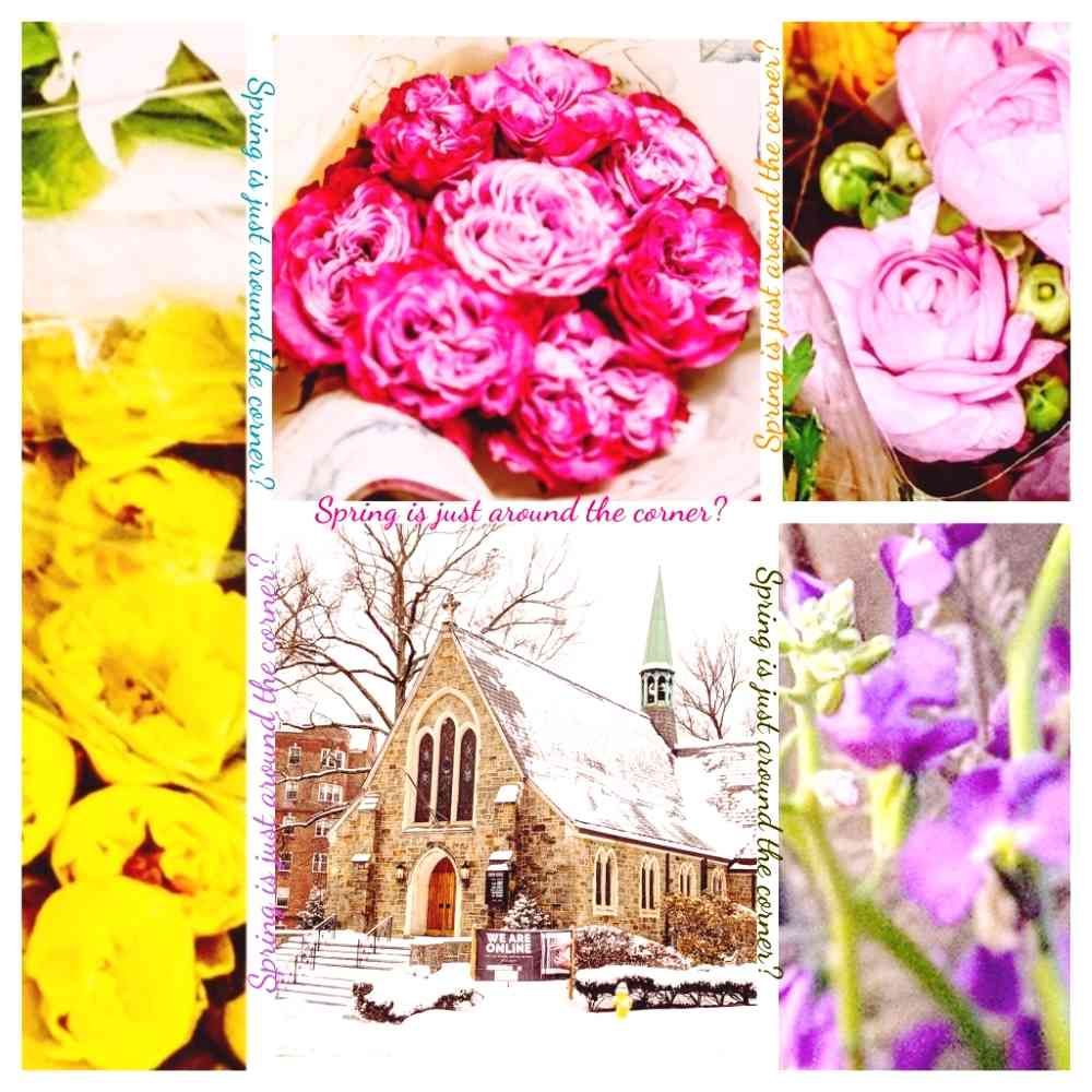 訪れたスーパーマーケットのお花達にまだまだ来ぬ春を一足先に感じて嬉しくて😊💕教会とコラボしてみました。💖