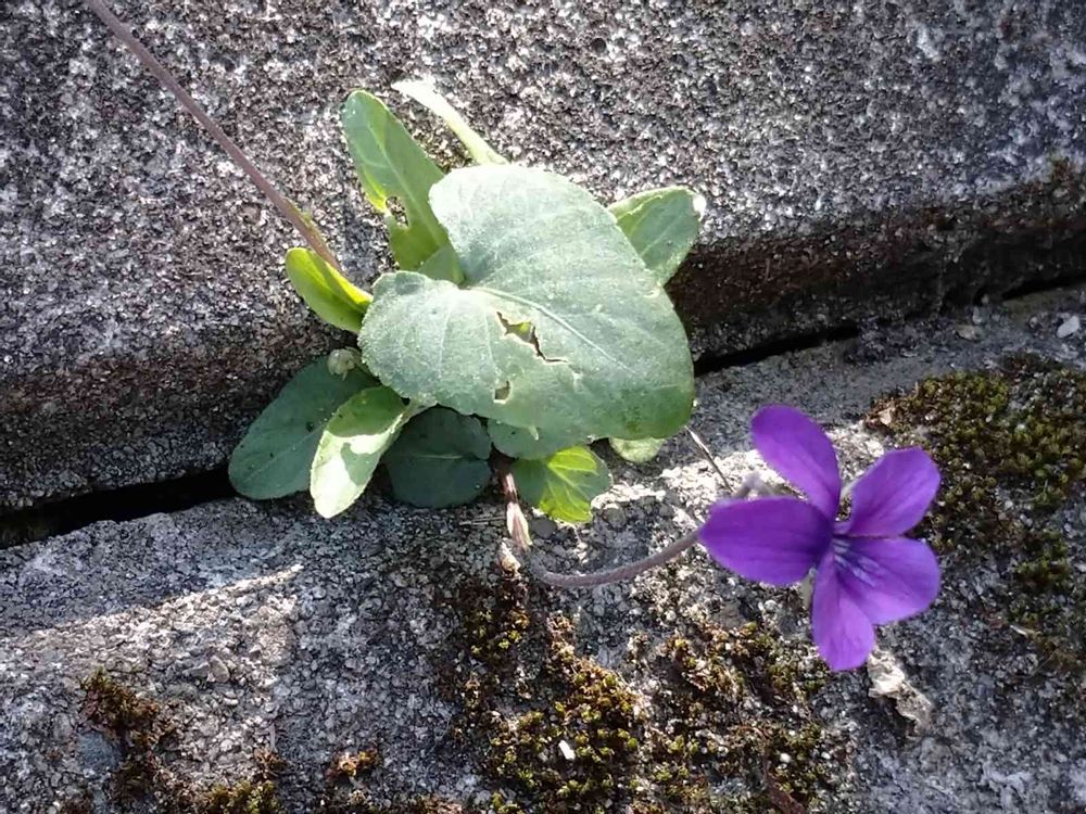 ど根性スミレ。こんなところにィ、とても綺麗なお花まで咲かせて。逞しいアイドルですね😸