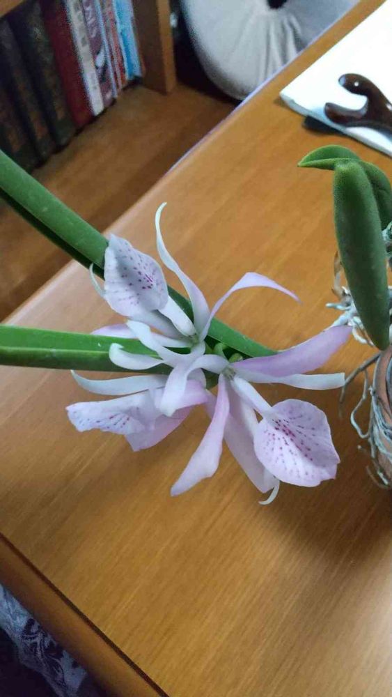 この花珍しいですね。ランですか?名前も花を見るのも初めてです。目の保養になりました。