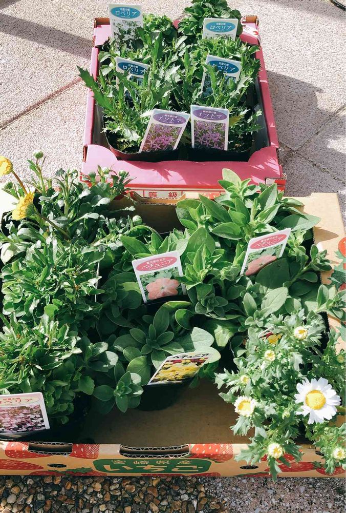 スーパーにいったら、お手頃なかわいい苗が入荷したてで😍少しにしとこうと、小さな箱の入れ物を取ったのに、気がつけばもう一個大きな箱を(笑)