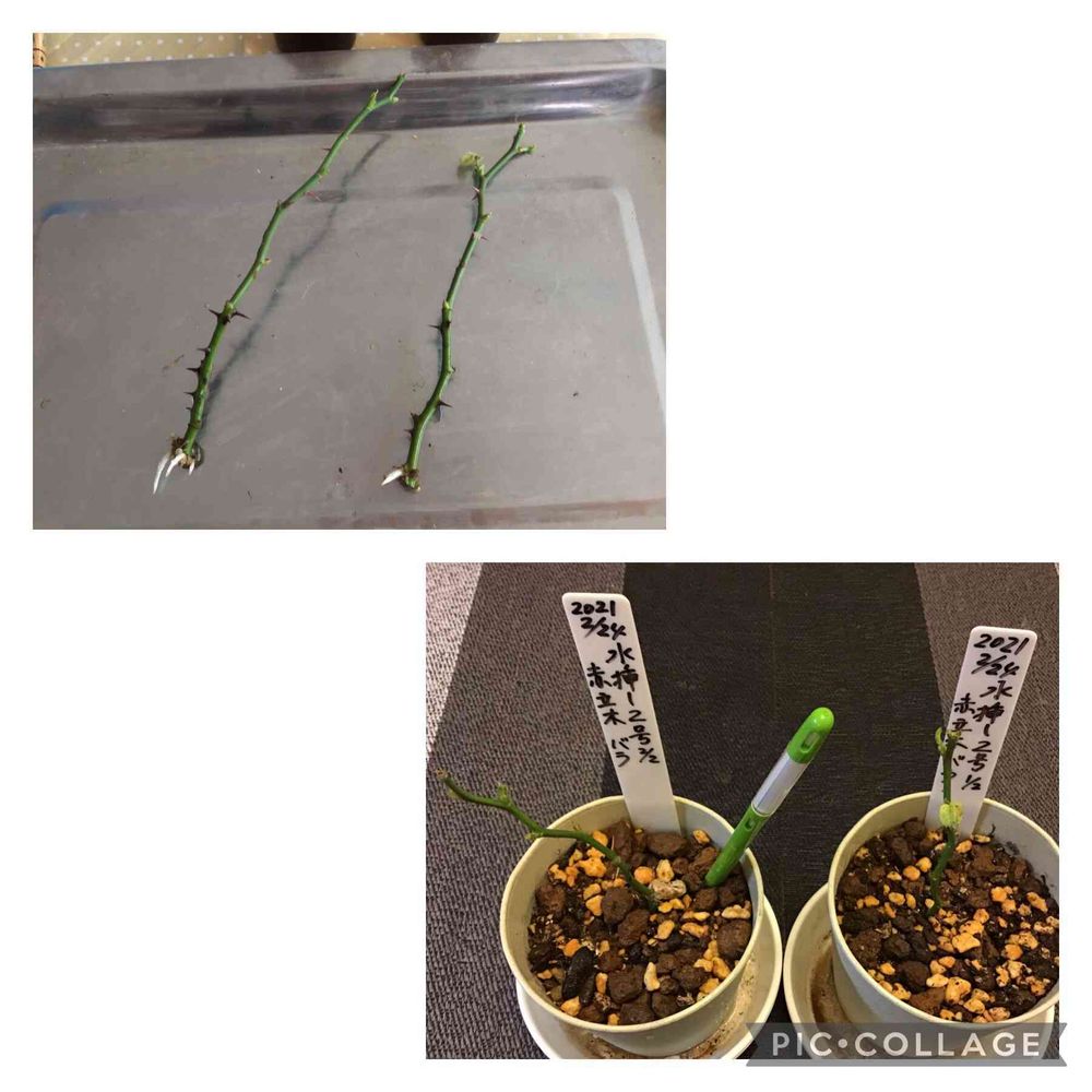 図らずも、水挿しとなったものなので、挿し穂の時期は不明。年末に土挿ししているので、同時期かと思います。まだ、土挿しの方は手応え無し。