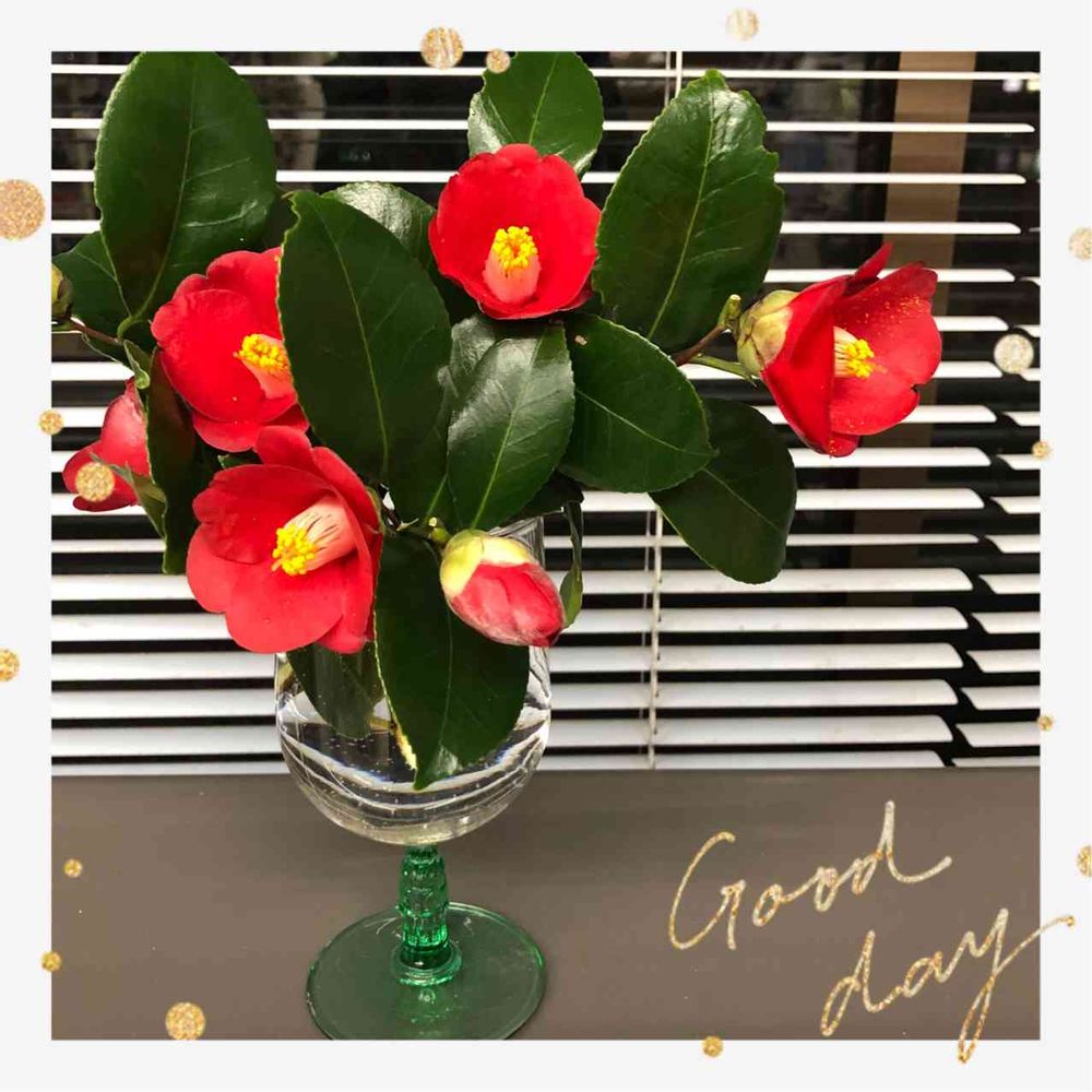 きれいな椿が咲いていたので少しだけ取らせてもらって、、、店に飾りました〜🎶💗