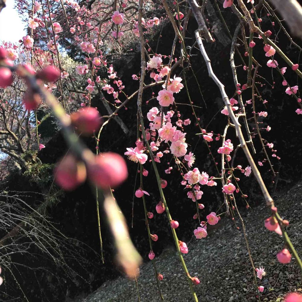 枝垂れ梅を近くで見たのは初めてで、とてもかわいいな〜と💕いいですよね〜