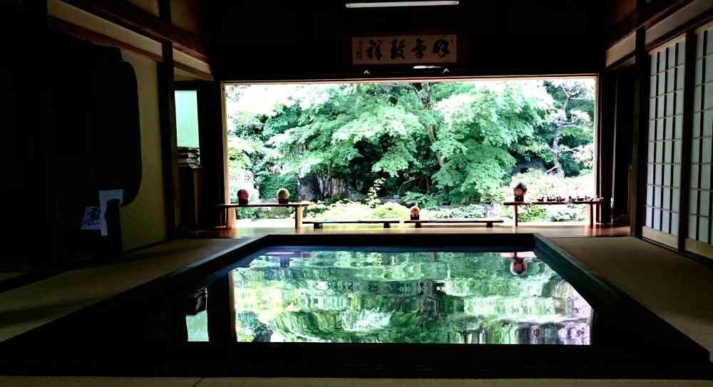 お寺の中に畳を剥がしてアクリルパネルを嵌め込んであり、夏は緑色の紅葉、秋は11月下旬くらいが見頃ですが、真っ赤な逆さ紅葉が誰でも見られます。珍しいのでアップします🙇
