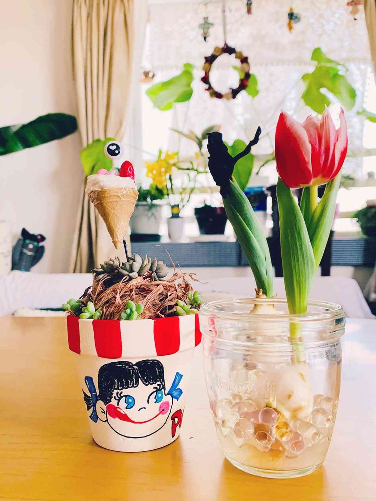 水耕栽培のチューリップっておうちで鑑賞出来て嬉しいですね💕