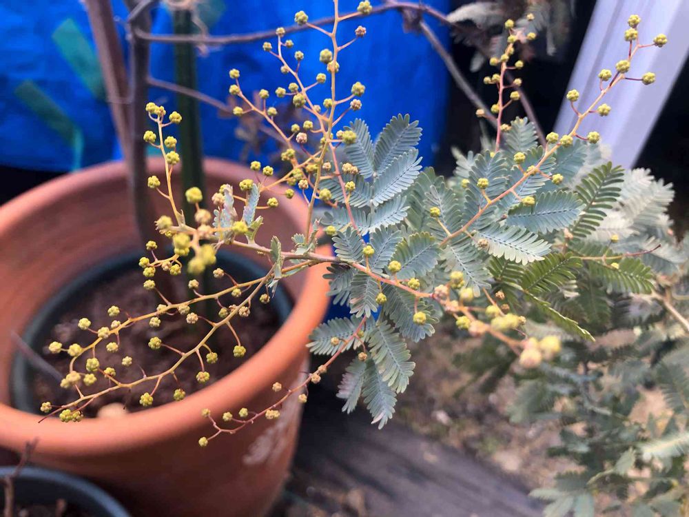 ミモザの蕾が少し黄色になりました❣️