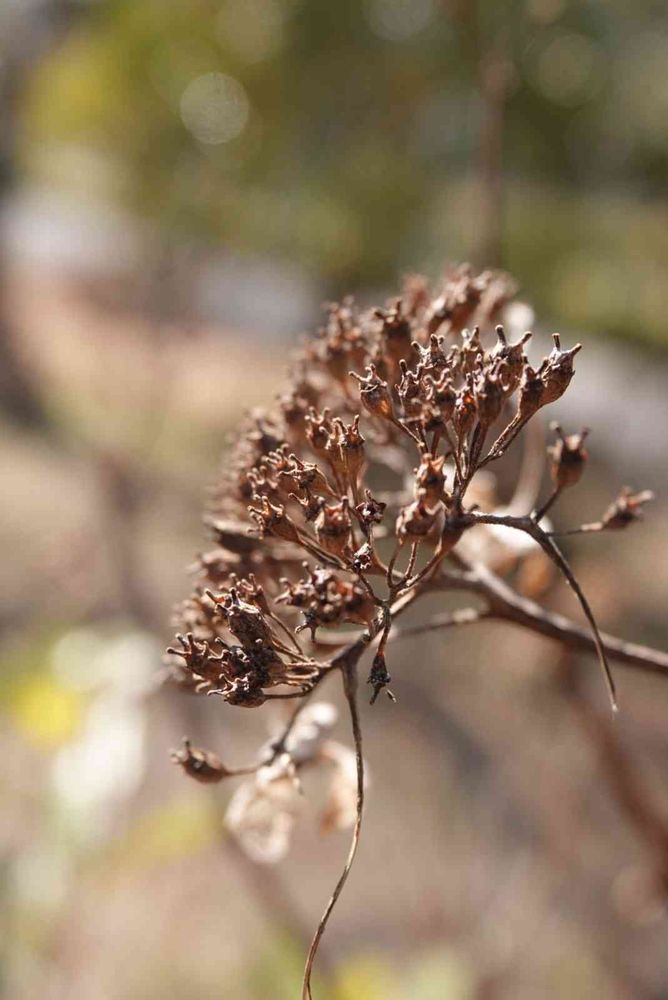 萼紫陽花の装飾花が落ちないままドライになるのはよく見かけていますが、中央の装飾花がそのままドライになったのを見つけました。
