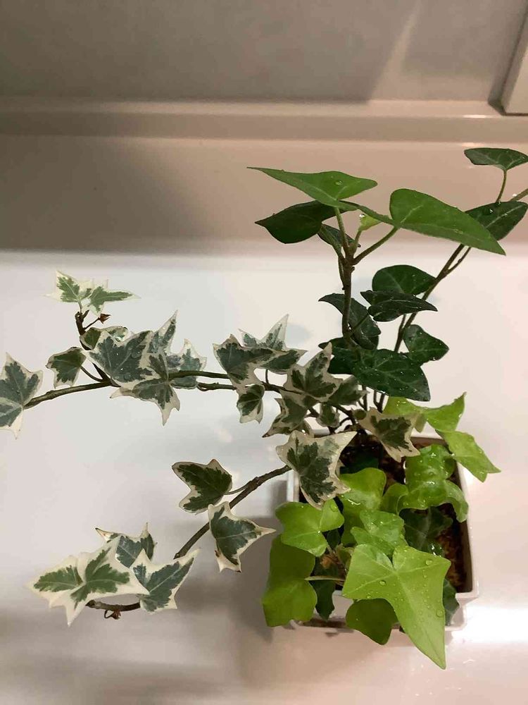 白い縁取りが美しいヘデラ ホワイトベール。外で冬越しできるか不安なので、念のため挿し木して室内で育てています。